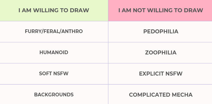 FURRY: Starts at 30 USD with a full body.You choose the 2 add ons from this list:
